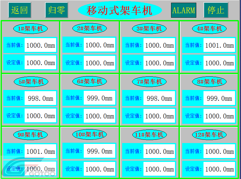 5) Simultaneous lifting and lowering of the same group of carriages can be stopped at any height in the lifting and lowering process to carry out the work under the vehicle.