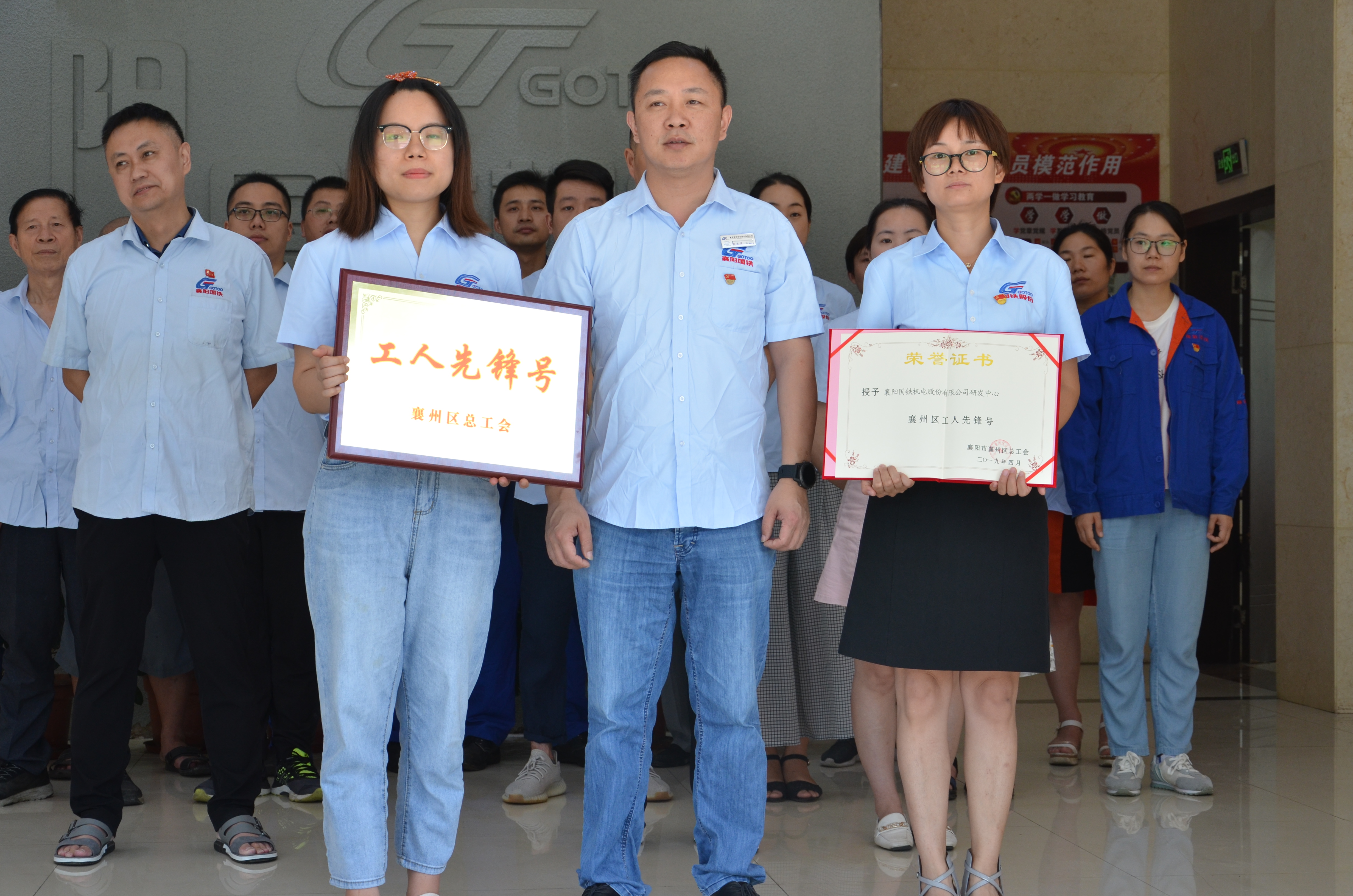 襄州區(qū)總工會決定,授予“王華同志襄州區(qū)五一勞動獎?wù)隆保皇谟琛跋尻枃F機電股份有限公司研發(fā)中心襄陽工人先鋒號”獎?wù)?。由黨支部書記代表代表襄州區(qū)總工會授予獲獎部門獎?wù)?、證書、獎牌。